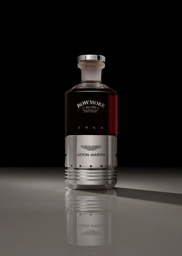 Bowmore® Islay Single Malt Scotch Whisky and Aston Martin unveil their first collaborative creation; Black Bowmore DB5 1964, a striking concept which brings together an iconic whisky and a legendary car in a bottle of equal parts, featuring exceptional single malt and a genuine Aston Martin DB5 piston.