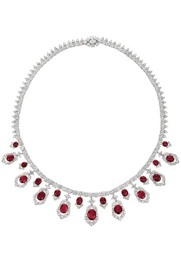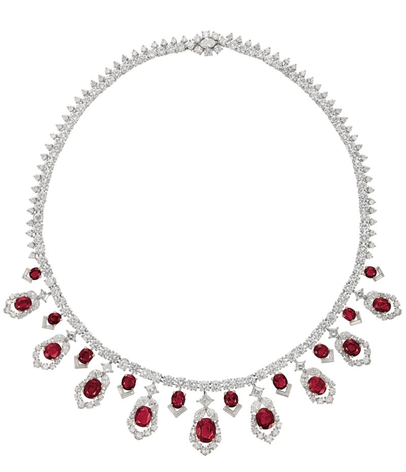 BURMESE RUBY AND DIAMOND NECKLACE, CARTIER, from the collection of Mary and Robert Montgomery Jr