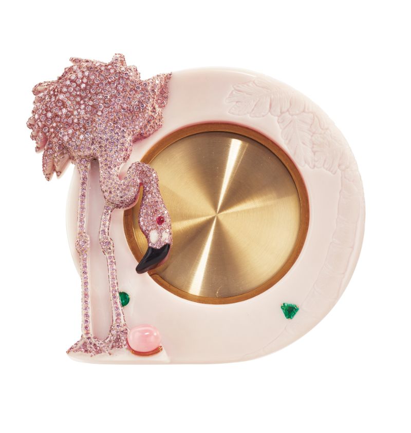 DANIEL BRUSH pink plastic, diamond, and multi-gem Flamingo frame