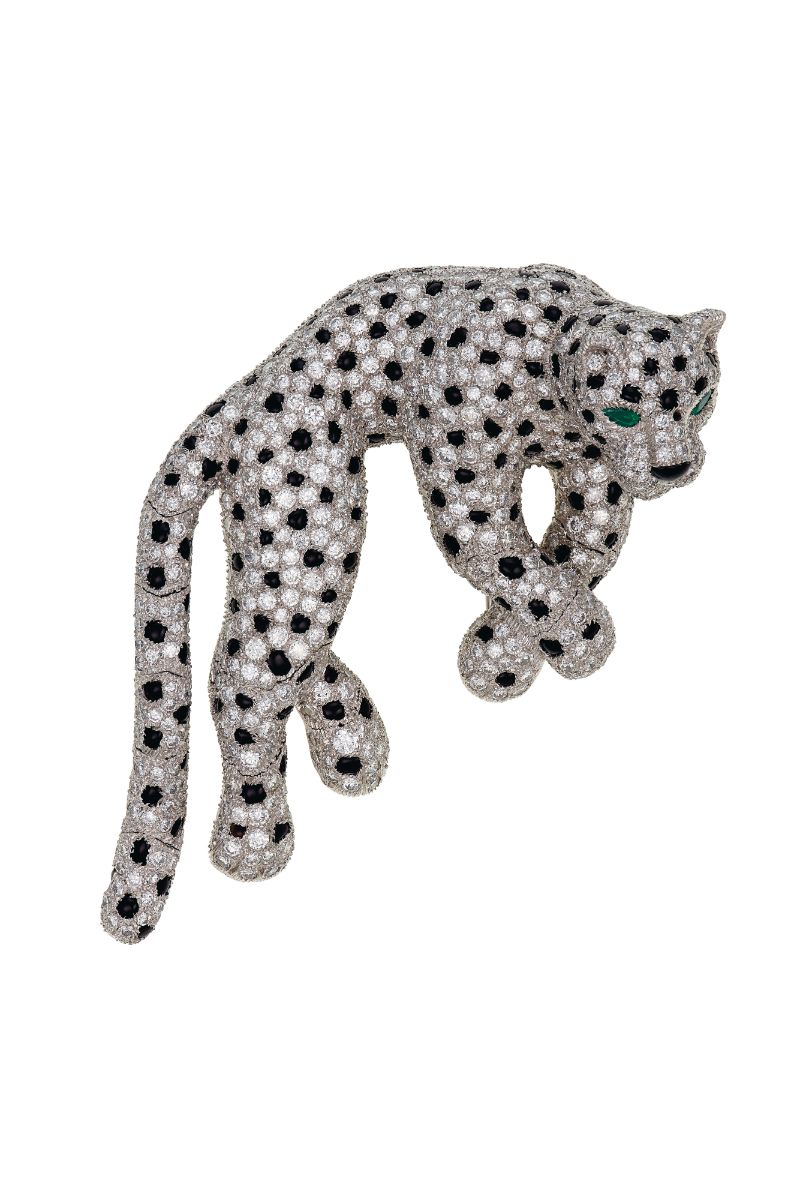 Diamond, onyx, and emerald 'PANTHÈRE' CARTIER clip brooch from the estate of Mireille Levy