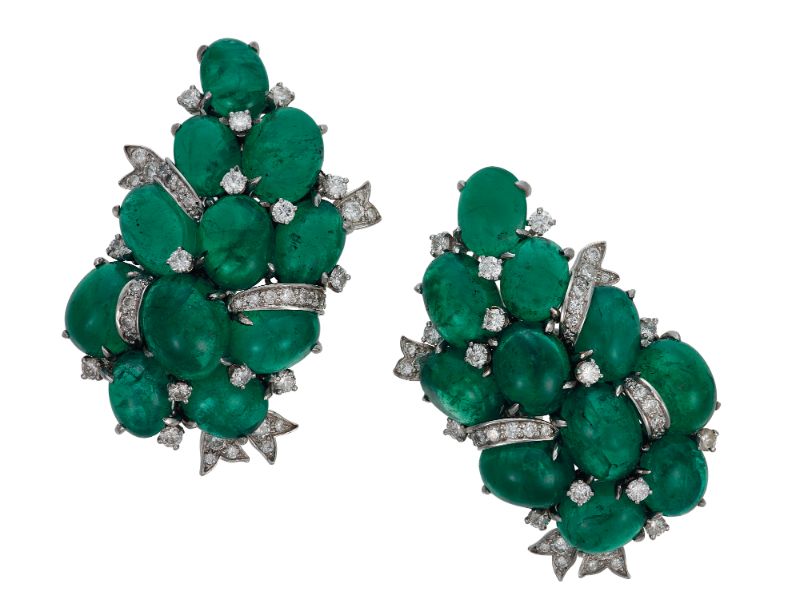 From the collection of Barbara Allen de Kwiatkowski, Verdura Emerald and Diamond Earrings