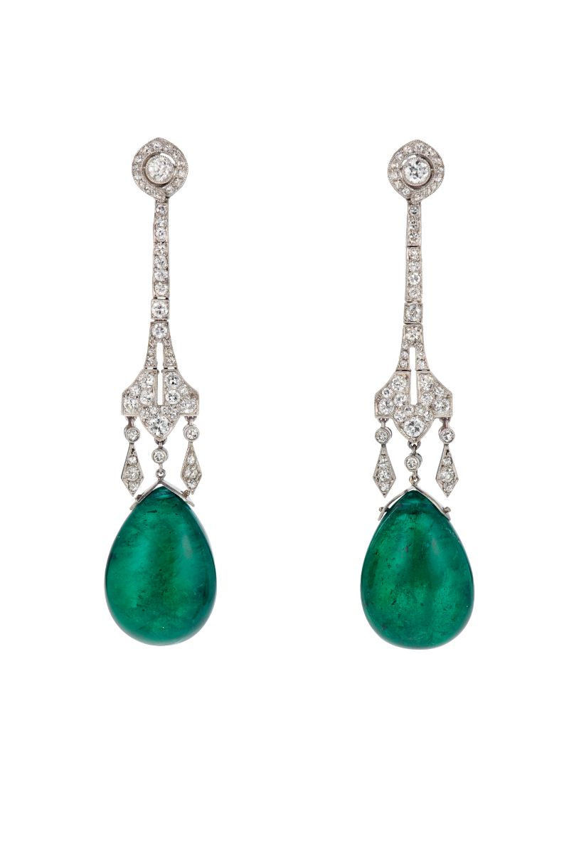 From the collection of Nina Griscom Emerald and Diamond Pendant Earrings