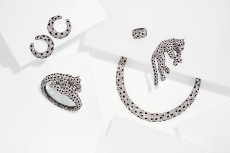 There are pieces from David Webb and Harry Winston in New York, to Van Cleef & Arpels and Cartier (such as the Panthere set above) in Paris, as well as avant-garde pieces from Marina B.