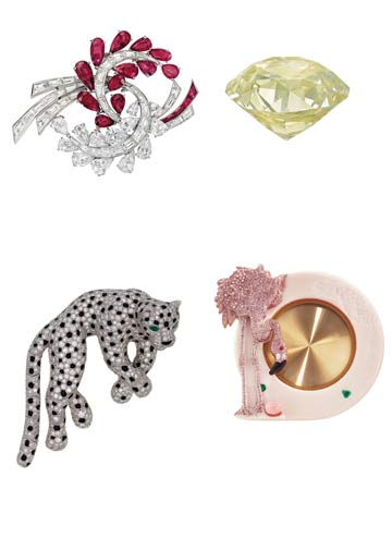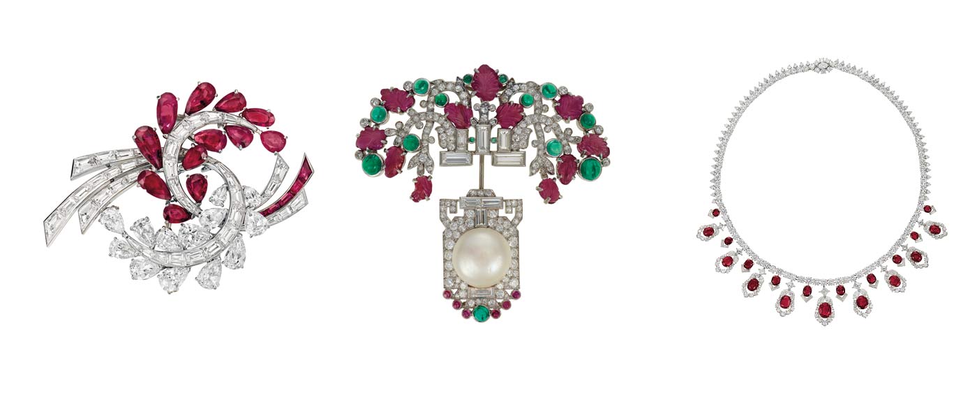 Property from the Collection of Mary M. and Robert M. Montgomery, Jr. presents over 20 elegant signed jewels including a Burmese ruby and diamond necklace by Cartier, circa 1955 ($150,000-250,000); Property from the Collection of Athena Blackburn Sold to Benefit Charitable Causes, comprises important designs by Bulgari, Graff, Schlumberger, Tiffany & Co., and Van Cleef & Arpels; and three lots offered in Memory of Lana Chenko Haddad, to be sold to benefit Shriners Hospitals for Children, the American Society for the Prevention of Cruelty to Animals (ASPCA) and Breast Cancer Research Foundation (BCRF).