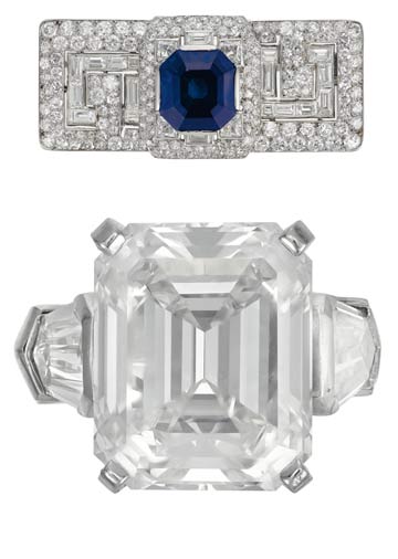 Other notable sapphires include a cabochon Kashmir sapphire ring of 21.72 carats by Van Cleef & Arpels from 1917 ($1,700,000-2,700,000); a Burma sapphire necklace of 80.86 carats ($800,000-1,600,000); and an Art Deco Kashmir sapphire of 12.64 carats and diamond brooch by Cartier, formerly from the collection of Jean Stralem ($1,000,000-1,500,000).