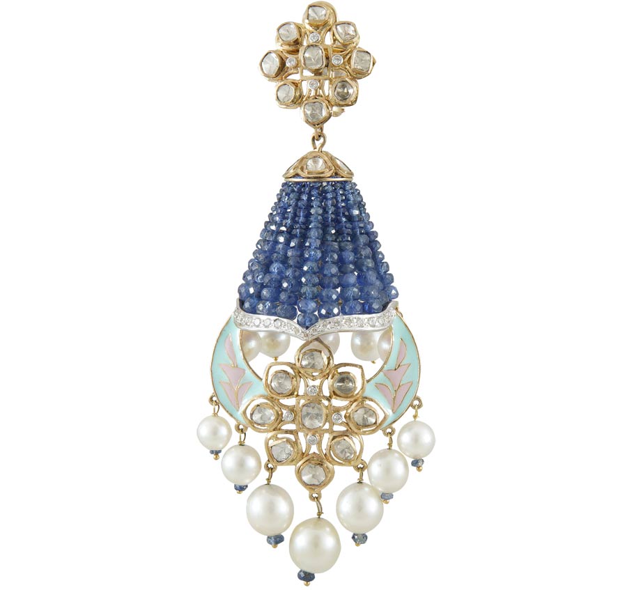Earring with polki, pearls and meenakari by Archana Aggarwal Timeless Jewellery