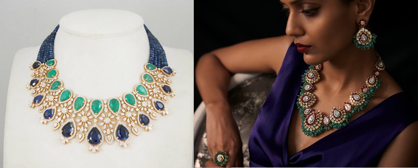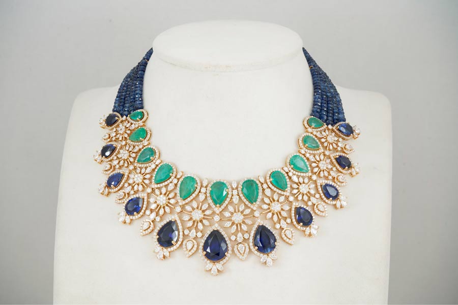 Emerald, sapphire and diamond necklace by Archana Aggarwal Timeless Jewellery