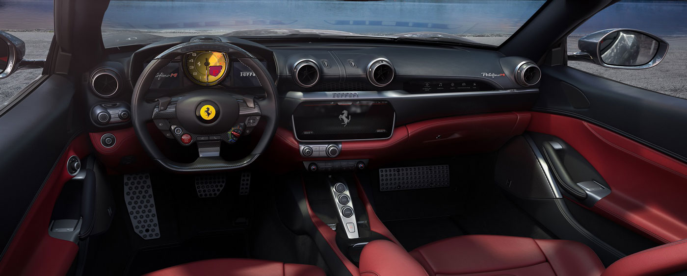 Inside the new Ferrari Portofino M comfort is key with ventilated or heated seats. With the top off, it becomes the ultimate spider