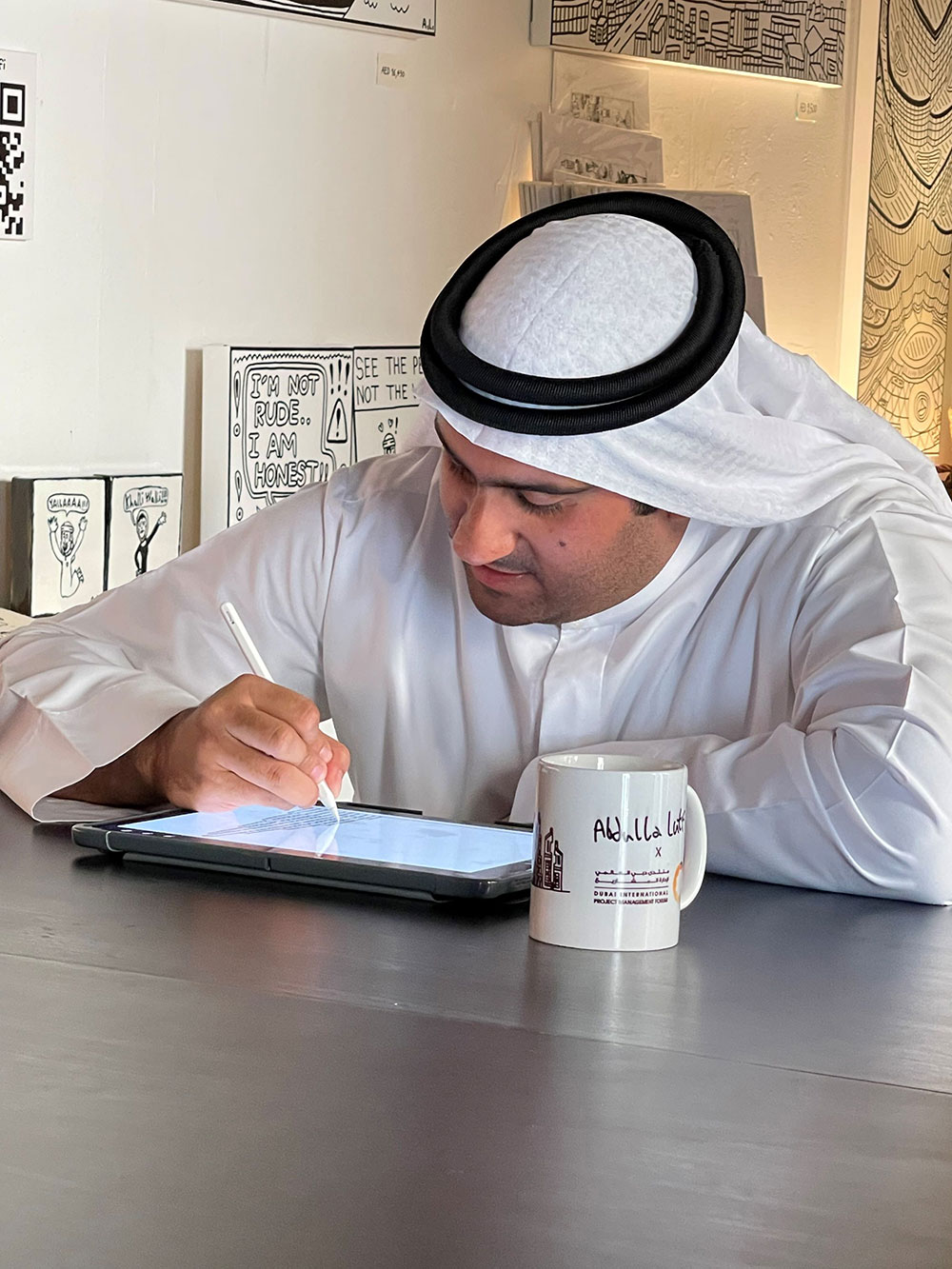 Despite the challenges he faces as an artist on the Autism spectrum, Abdulla embraces his condition as an advantage, leveraging his amazing memory, attention to detail, and spontaneity in his work. His illustrations not only offer insightful observations of UAE culture but also serve as a platform for meaningful storytelling and social commentary.