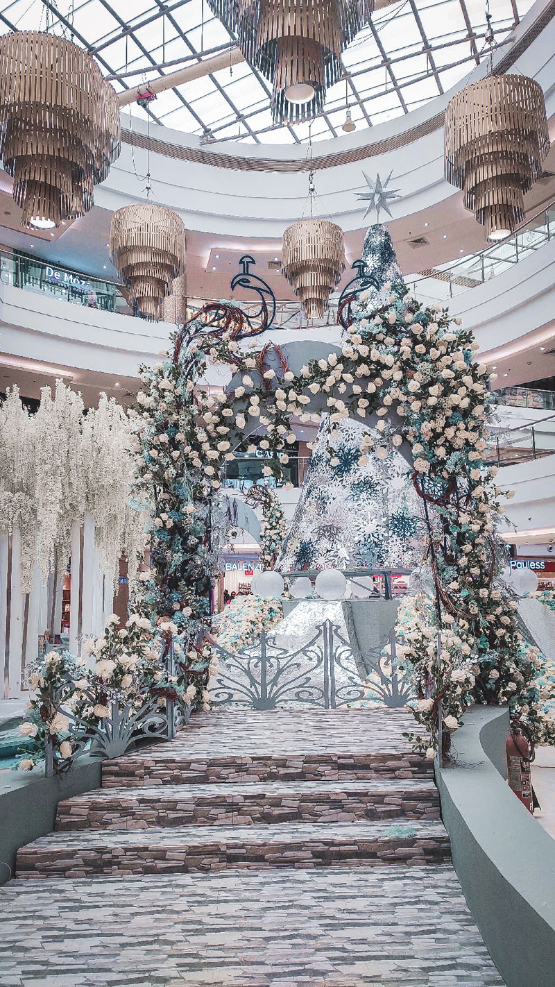 It all starts from the concept, and the concepts at Phoenix Marketcity are unique and very thoughtful. We create a story from the works of art we make which has the emotional impact that expresses the message that was intended. Traditional holiday seasons asks for a traditional approach, as for example a Xmas tree and a reindeer, but it is truly up to us, as designers, to give it a tweak to make it special. This particular installation had a ‘innovative’ look, yet is still recognizable and relatable to. The story of a snowflake used as inspiration gives it more depth and includes the visitor into as part of the scene.