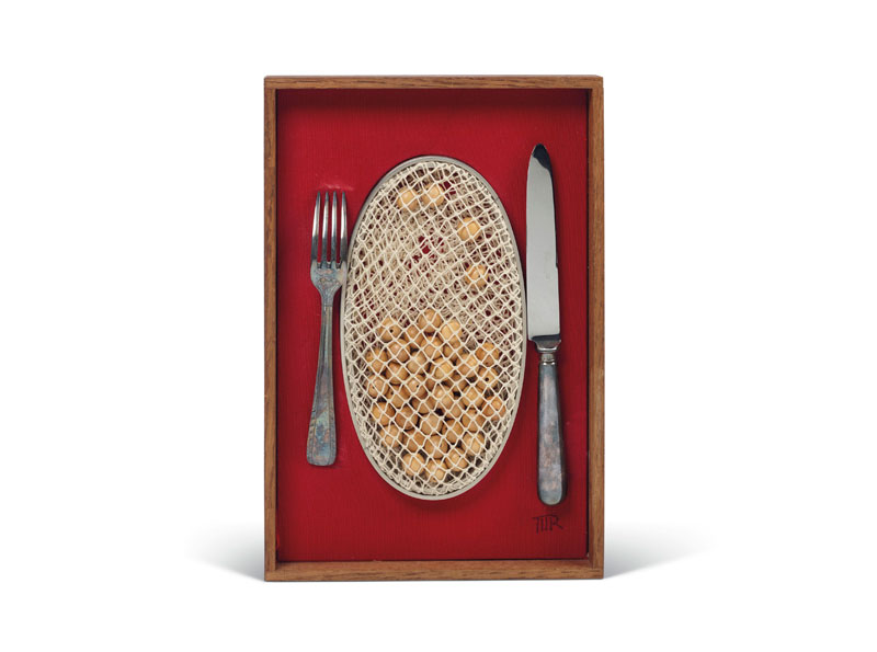 As to objects and assemblages, underlining the humour and mythical character of Man Ray’s work, will also be offered at this sale. These objects, with Man Ray referred to as “objects of my affection”, illustrate the treasures of creativity that the artist uses in the conception of his universe. According to his doctrine, “everything is possible from nothing”. Thus the 1971 version of Object to be destroyed – Perpetual Motif is no exception to the rule, and features a metronome whose pendulum is adorned with a photograph of Lee Miller’s eye, printed on optical paper (estimate €25,000-35,000). Similarly, between fantasy and simplicity, the essay by Mr Knife and Miss Fork consists of a silver-plated metal knife and fork with wooden beads and braided cotton net mounted on a wooden panel (estimate €10,000-15,000).