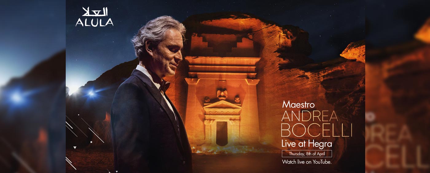 The world’s most beloved tenor, Maestro Andrea Bocelli, returns to AlUla on Thursday April8, 2021 for a world-first performance at UNESCO World Heritage Site, Hegra. While tickets are limited, the full concert will be broadcast uninterrupted to GCC viewers on MBC 1 at 10pm KSA time.