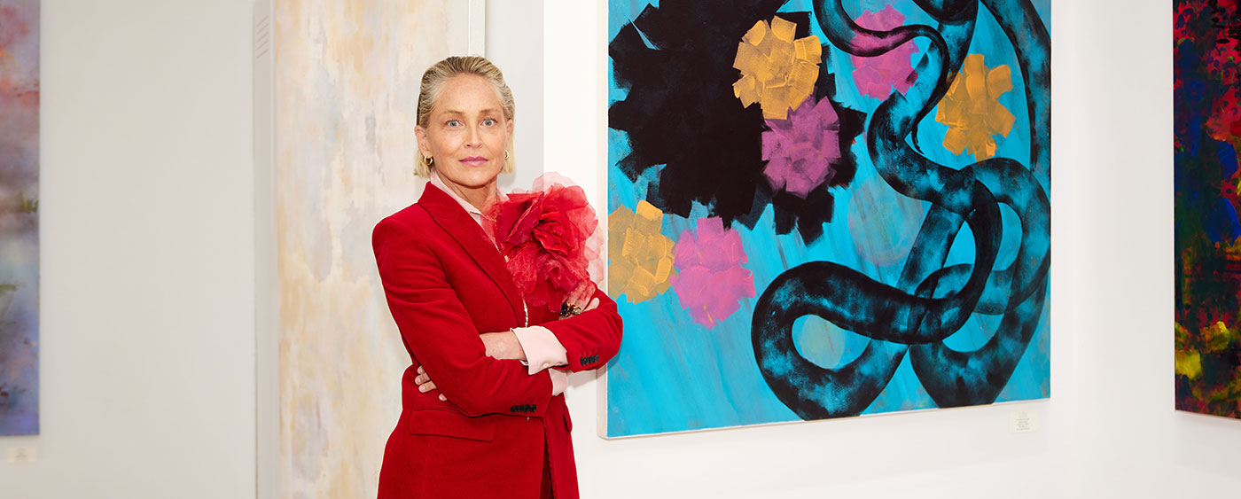 Hollywood superstar Sharon Stone, known for her sultry, award-winning roles, has shown her paintings in a brand new exhibition at the C. Parker Gallery in Greenwich, Connecticut, in an East Coast premiere, entitled Sharon Stone: Welcome To My Garden, on view October 12 through December 3. “We are honoured to present the highly anticipated East Coast debut of Sharon Stone’s powerful art, for our tenth anniversary season,” says Tiffany Benincasa, C. Parker Gallery’s owner and curator. “This new exhibition offers a never-before-seen panorama into Sharon Stone’s creative prowess. The artist invites viewers on a journey through the vibrant landscapes of her imagination, reflecting her inner world. A testament to Stone’s profound talents,” adds Benincasa. The gallery is located at 409 Greenwich Avenue, just a 40-minute train ride from New York City.