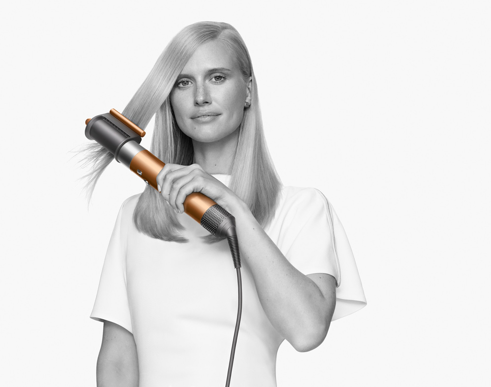 The next-generation styling barrels featuring a rotating cool tip, make achieving curls and waves faster and easier (as compared to the original styling barrels of the first Dyson AirwrapTM) – with no heat damage, to help maintain hair strength . Blending the results formerly achieved with two barrels into one attachment, now users can style the full head, creating clockwise and anti-clockwise curls and waves, without the need to switch attachment mid-style. Re-engineered brush attachments deliver precision shaping with enhanced Coanda performance, alongside an all-new dual-purpose Coanda smoothing dryer. Combining two attachments in one, the Coanda smoothing dryer hides flyaways in a single pass, with no extreme heat and transforms into a powerful dryer with the flick of a switch.