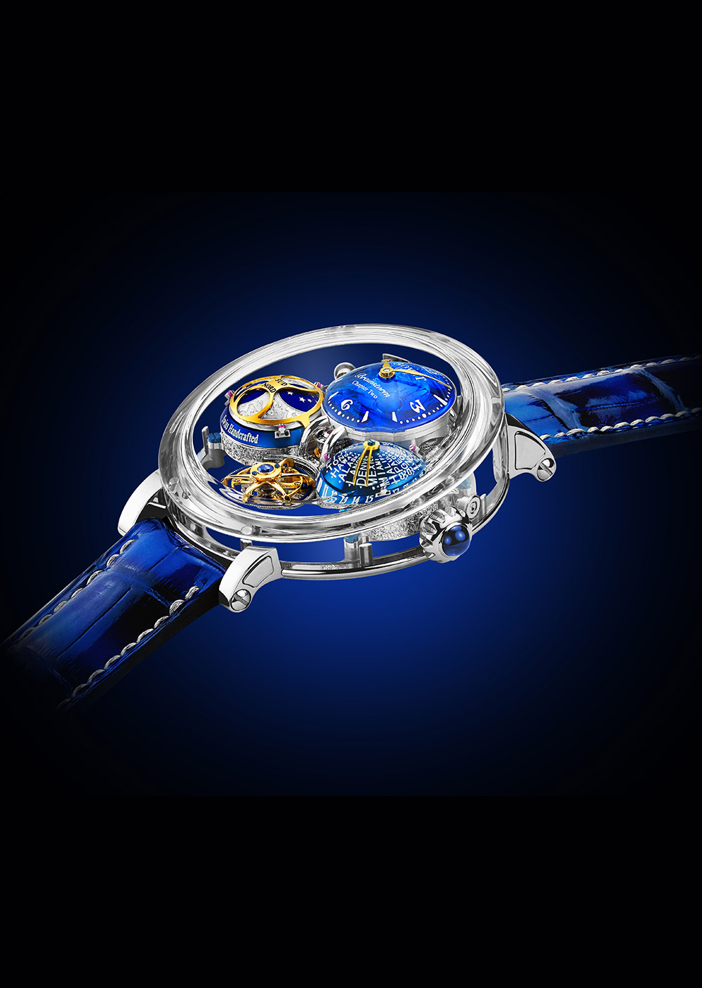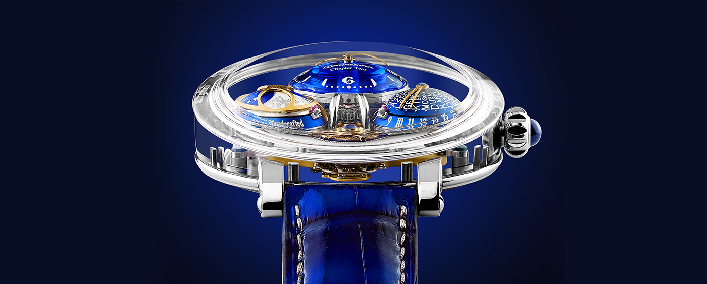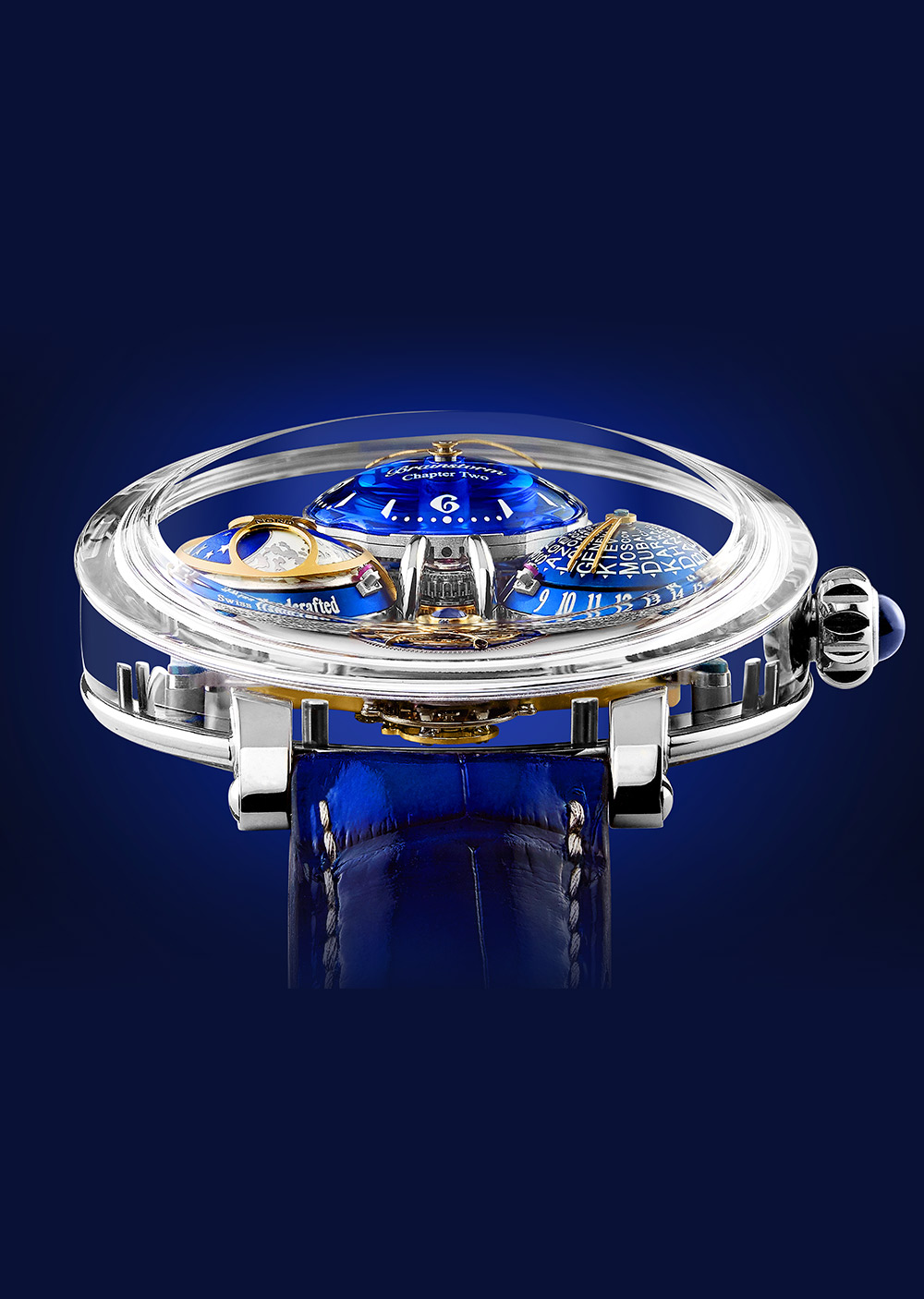 The sapphire sloping case of the Bovet Recital 26 Chapter Two allows for easy visibility of the domes