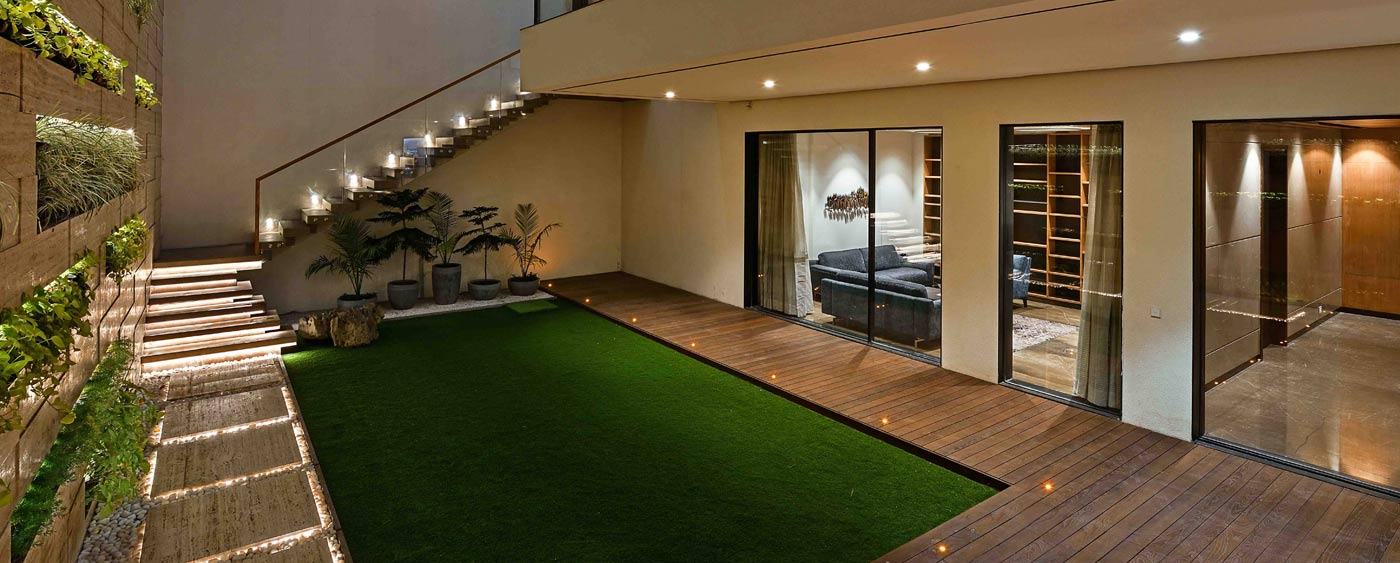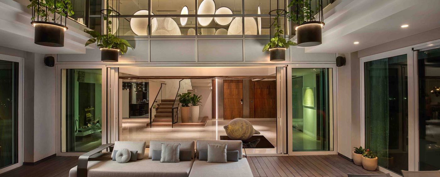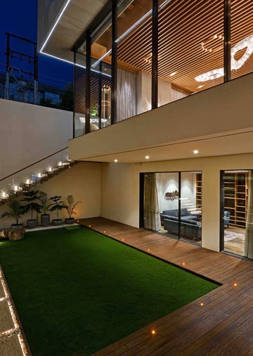 Holistic architecture is all about conceiving the interiors and exteriors as one single entity, with one simply being the extension of the other. So outdoor spaces further refine and beautify the interiors. As an essential part of one’s home, these charming outdoor spaces are carved out of the built mass, more as a centrifugal element around which the building takes shape. A wonderful dialogue between the two areas is evident in the designs, as seen in the range of outdoor spaces crafted by the firm.