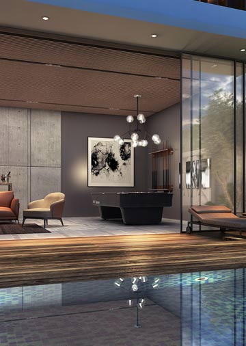 Paired with an entertainment area, the pool terrace offers an exquisite experience, and enhances the spatial quality of the home.