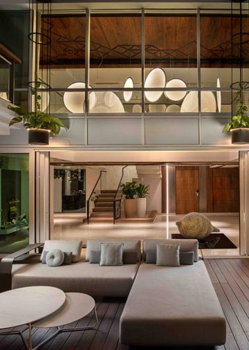 This feature introduces light and greenery into a house in an unique way. Planned as a vertical green artery, it unites all the floors, infusing them with natural light and vitality.