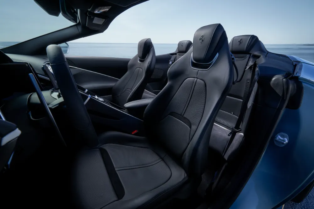 Deploying in just 13.5 seconds at speeds up to 60 km/h, the soft top not only enhances the car's aesthetic appeal but also contributes to a more extensive boot space, showcasing thoughtful design. The introduction of a patented wind deflector seamlessly integrates comfort without compromising the car's spatial efficiency. Retaining the Ferrari Roma's dynamic characteristics, the Spider boasts a remarkable weight/power ratio, an all-aluminium chassis, and a potent 620 cv V8 engine that has been celebrated as the ‘International Engine of the Year’.