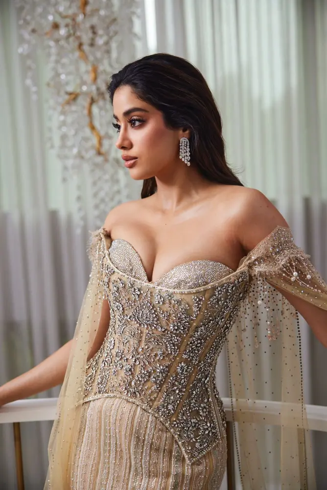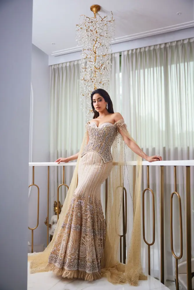 Jahnvi Kapoor in a corset gown by Tarun Tahiliani in a yet to be showcased bridal couture collection.