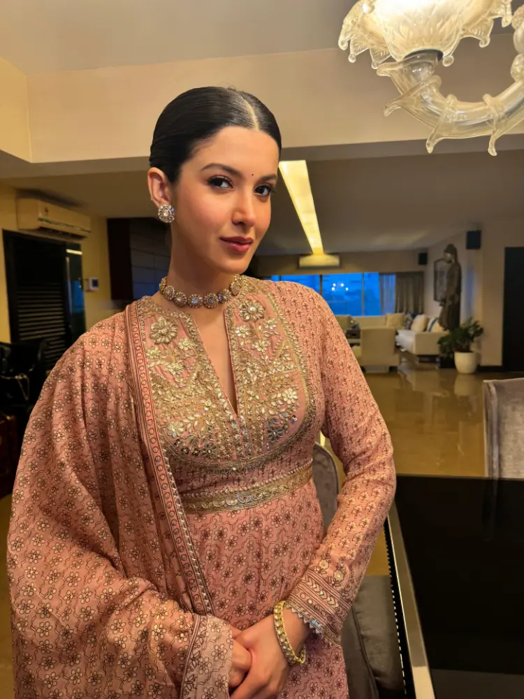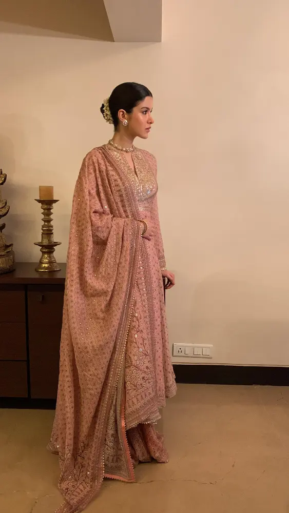 Shanaya Kapoor in a blush pink anarkali set by Anita Dongre