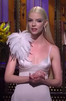 Anya Taylor Joy wears Tiffany and Co. while delivering her monologue for SNL