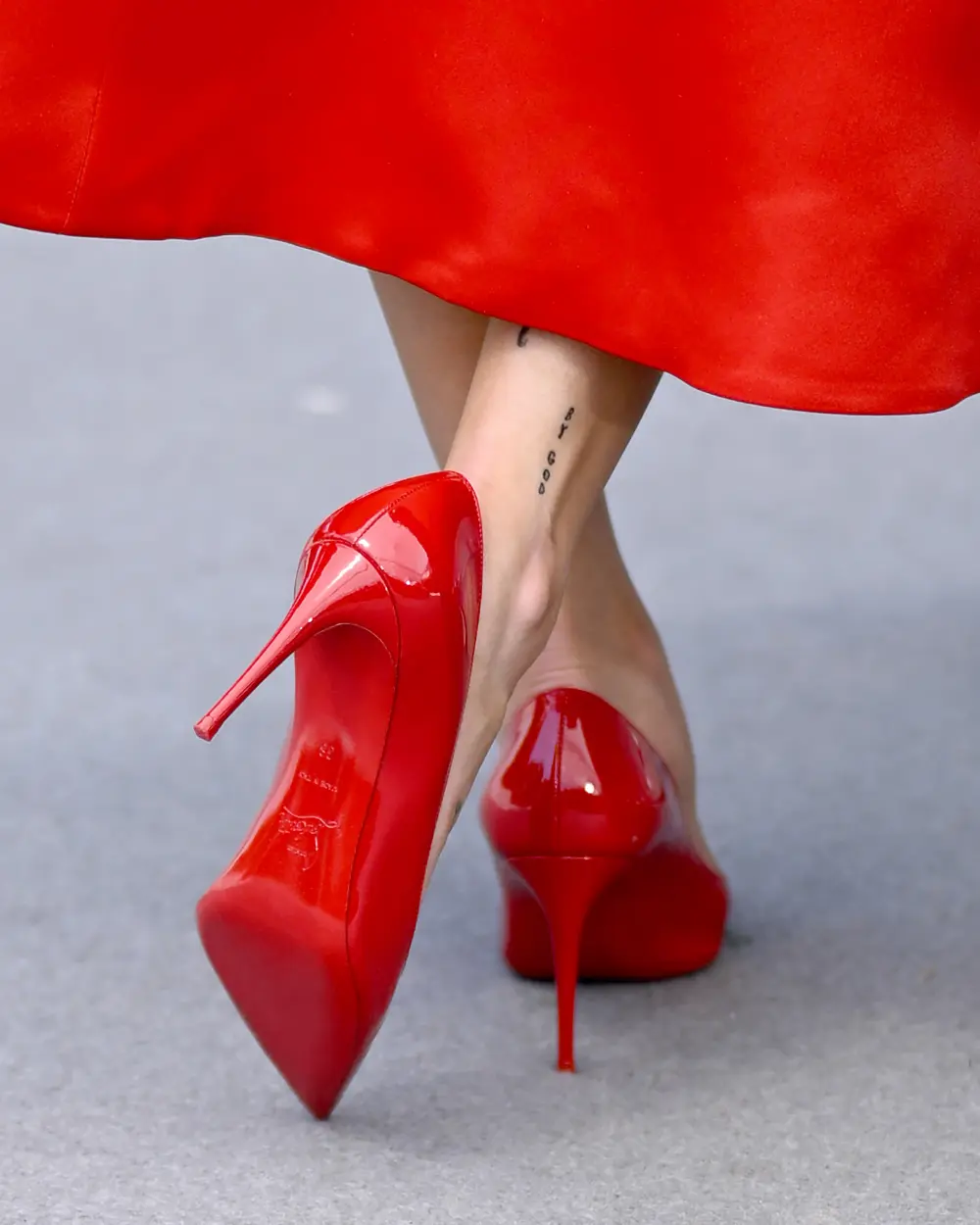 American singer and actress Selena Gomez attended the ‘Emilia Pérez’ photocall at the 77th annual Cannes Film Festival 2024 wearing a pair of classic Kate pumps in patent red to match her classic, ruffled red dress that was evocative of a bygone era of glamorous days and nights on the French Riviera. She paired her look with diamond-set earrings and a cocktail ring.