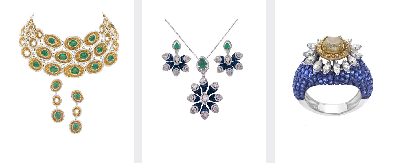 We thought of using the concept of colour blocking with contrasting hues of emeralds and blue sapphires to add a unique dimension to the design.