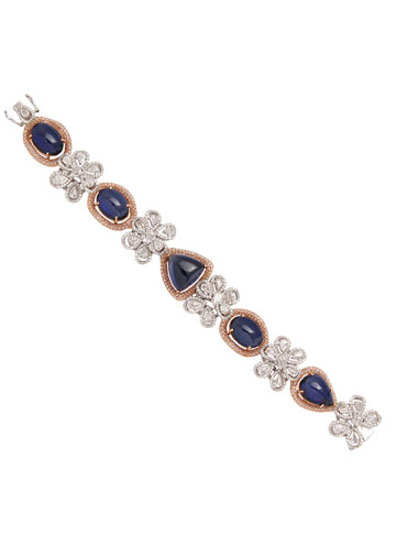 Cuff by Anmol crafted in 18 k gold and set with blue sapphires and diamonds (Meraki Collection)