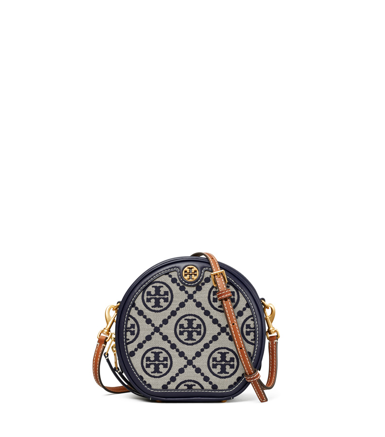 Further building upon this iconic collection, Tory Burch is thrilled to launch the T Monogram Moon for Spring/Summer 2O22. Evoking travel and adventure, the circular shape of a vintage canteen bag has been made for wherever the road leads you. Its structured frame is rounded out with stitched leather trim, a top zipper and protective brass feet on a flat base.