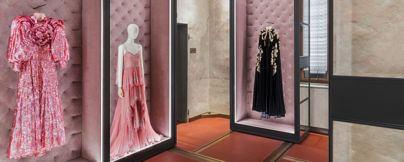 Acquired by Gucci in 1953, the Palazzo became an integral part of the brand, both physically and metaphorically. Despite its grandeur, over the centuries the palace proved to be a flexible structure, capable of accommodating additions, splits, partitions, changes of ownership and use. It has served as a factory, a workshop and a showroom. Today, thanks to the refurbishment commissioned and designed by Creative Director Alessandro Michele, the building has not only been restored to its original character but has also been allowed to tell its own story and reveal its multiple identities, becoming the symbol of a dialogue between past and present − the necessary prerequisites for the future. Here, the vision of the creative director has joined that of the archivist, the historian, the anthropologist, the scholar, the psychoanalyst, and the philosopher, eschewing defined boundaries, instead tracing theoretical and experiential paths that go well beyond the displays.