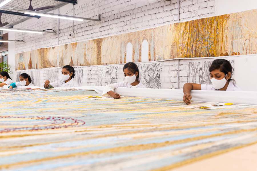 Maria Grazia Chiuri is a friend, a guide and a mentor to us since our early days. She was the one who gave us that much-needed push to open the school. Every time we need to collaborate, there’s always an in-depth discussion on the story we want to say, how it needs to be said, the right artist for it, and exploring how the artist and our students can bring out the best in each other. The process is truly collaborative and immersive. Our students are not just tasked with executing a vision but are also made to understand what it is they’re working on, the true message and impact of their work, which makes them feel like actual stakeholders in the process and truly proud of their work.