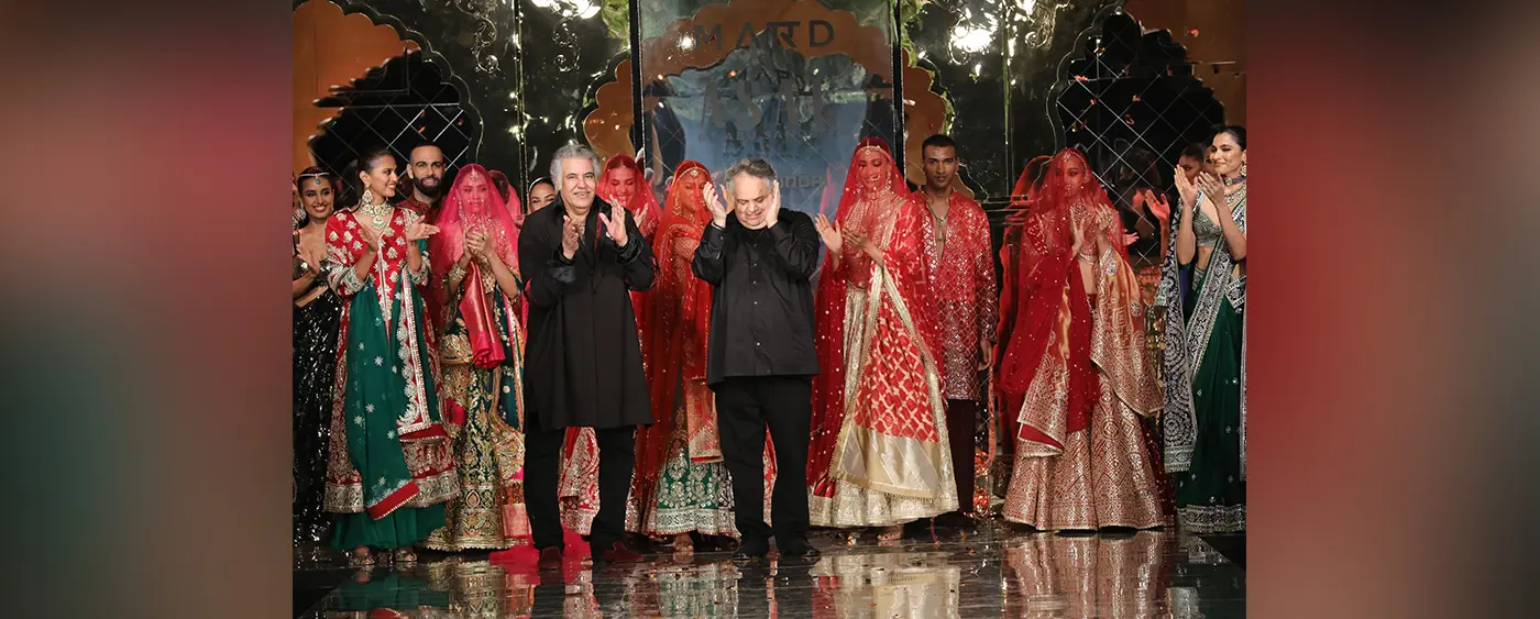 Wamiqa Gabbi vowed the audience while opening the show in an Ivory Trail Lehenga from the ‘Botanical Bloom’ line, featuring Resham embroidery with ivory silk threads highlighted with pearls and crystals. She closed the show as a regal bride in a Red Lehenga from the ‘Bridal Gota’ collection, handcrafted with Gota, Zardozi and encrusted with crystals.