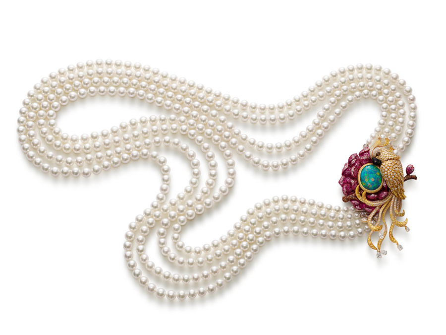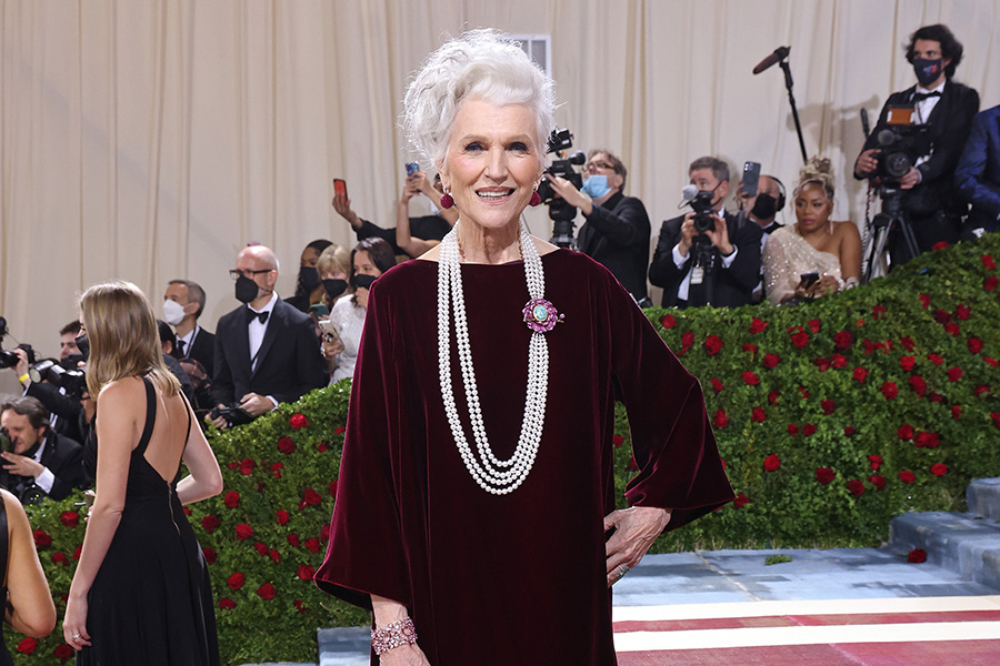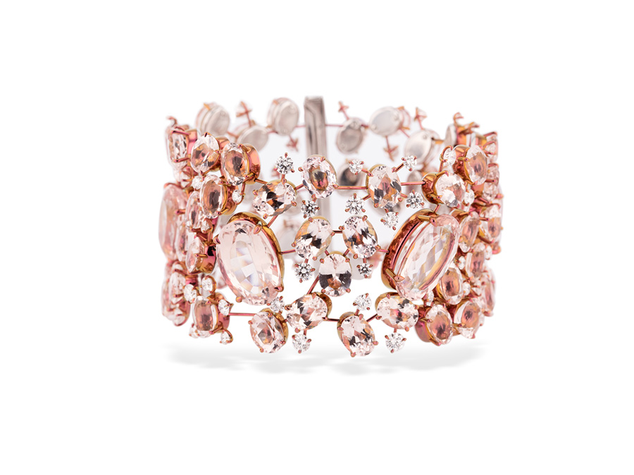 Model Maye Musk – also Elon Musk’s mother – selected a necklace from the Red Carpet Collection in 18 k yellow gold and titanium featuring a 42.97-carat black opal, 22.47 carats of cultured pearls, 20.75 carats of rubies, brown diamonds, pink sapphire and diamonds, earrings from the Copacabana Collection in 18-karat rose gold featuring 109.18 carats of rubies and 0.70 carat of diamonds, bracelet from the Haute Joaillerie Collection set in 18 k Fairmined certified white gold and titanium featuring 99.86 carats of morganites and white diamonds and a ring from the For You Collection featuring emeralds and diamonds.