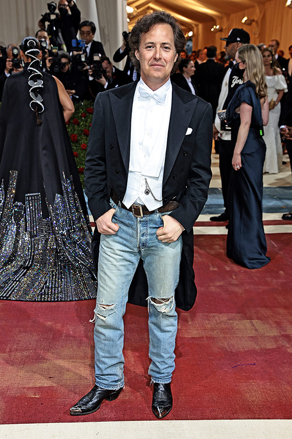 David Lauren wore a Ralph Lauren Purple Label Tuxedo Tailcoat, Wingtip-Collar Piqué Bib Poplin Tuxedo Shirt, White Piqué Vest, White Piqué Bow Tie, and Double RL Jeans.