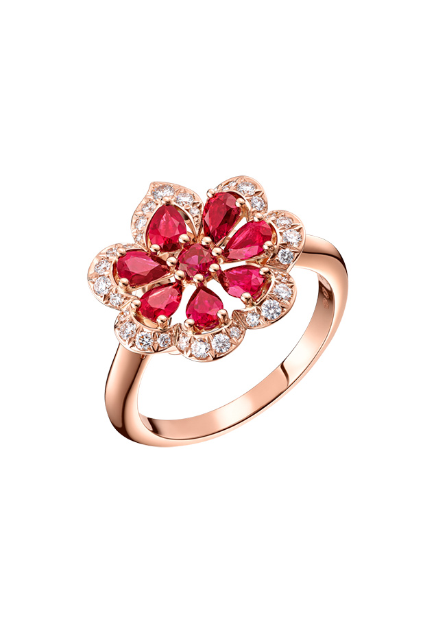 Actress Jenna Ortega shone in a pair of earrings in 18 k Fairmined Certified rose gold and titanium featuring 27.62 carats of rubellites and 7.84 carats of orange red sapphires, a ring from the Haute Joaillerie Collection in 18-karat white Fairmined certified rose gold and white gold featuring pink diamonds and diamonds, a ring from the Precious Lace Collection in 18 k white gold featuring diamonds and a diamond ring from the Happy Butterfly Collection in 18 k white gold.
