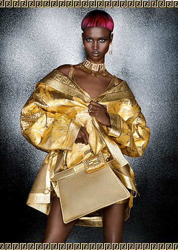 “The campaign captures the same sense of friendship and energy we had when we were designing the collection. Kim is a visionary designer and innovator. To me, Fendace will always mean love,” Donatella Versace, Chief Creative Officer Versace. Presented across two celebratory campaign videos, each sees a glamorous cast of supermodels – Adut Akech, Amar Ak- way, Anja Rubik, Anok Yai, Imaan Hammam, and Lina Zhang – entering the Fendace nightclub to let loose in their fabu- lously Fendace outfits – as long as they get past the fearsome bouncers on the door: none other than Naomi Campbell and Kristen McMenamy. Looks truly demonstrate the collection’s shared vision, as the Very Versace concept of more-is-more dressing comes together with Fendi’s considered approach to accessorizing and craftsmanship. Print and colour is loud and emotive, and fun logoism is fully embraced. Embellishments gleam across gem-studded accessories and jewellery which combine Fendi and Versace brand codes. Styles like the Fendace Peekaboo and Baguette – that combines the iconic Fendi bags silhouettes with Versace codes – and the Fendace La Medusa handbag – where the Fendi FF logo meets Versace’s Medusa – are a clear statement of the collection’s intent to create unique designs with respect for each fashion house at the core.