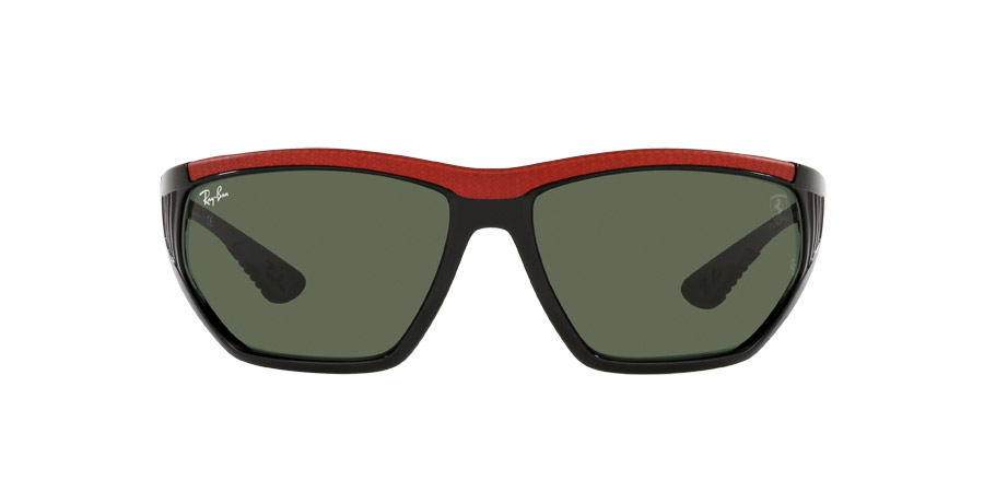 RB4364M: Powerful, yet streamlined, engineered steel hinges and an eye-catching high-brow structure balance out the bold profile of this dynamic shape with a made-for-speed look & feel. Designed to wrap around your vision of the circuit, ergonomic rubber nose pads and grips, along with a high-brow rubber insert in Testa Rossa red or Modena yellow to stand out against dark frame colours or complement a racy red model, sleek dark green or energy-charged flash lenses feature trademark lens logos to make sure its unique Ray-Ban for Scuderia Ferrari design stands up to the pace.