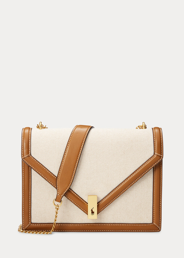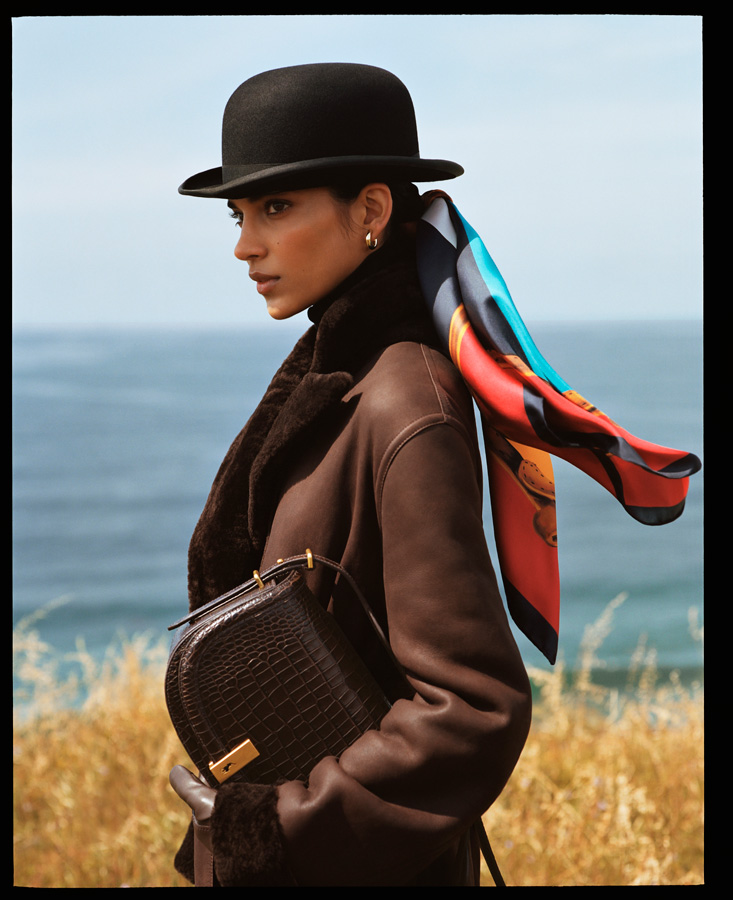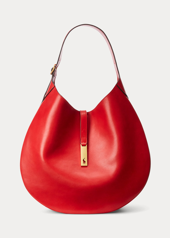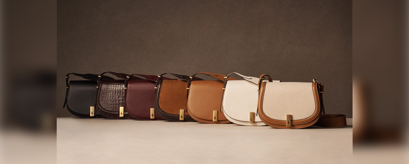Four handbag silhouettes evoke an equestrian sensibility and feature the sleek brass hardware with a cut-out of the Pony Player. The ID Shoulder bag, the largest style in the collection, has a spacious, dual- compartment saddle silhouette with suede interior construction. An adjustable strap with bombé detailing allows the bag to sit comfortably beneath the shoulder or to be extended to style as a crossbody.