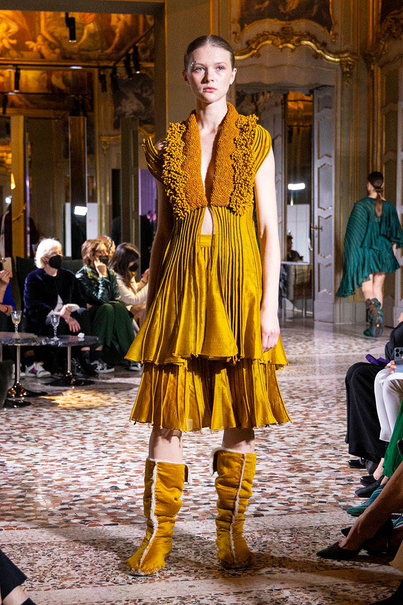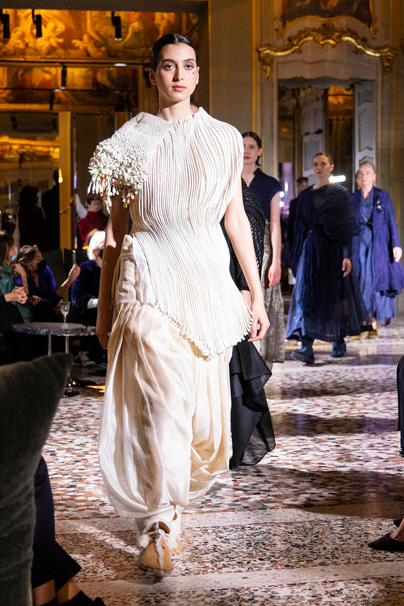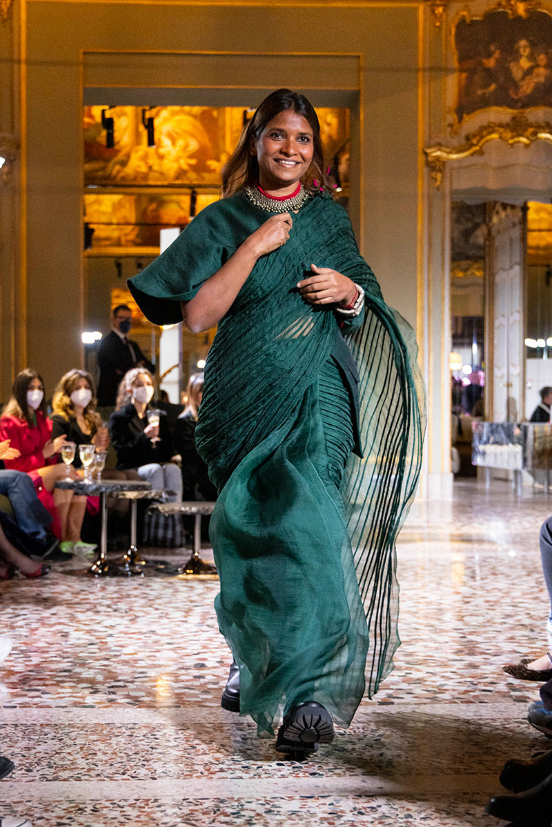 It’s been a year of firsts for this Mumbai designer - first woman designer at Paris Haute Couture Week last year, and now at Milan Fashion Week. Known for her handwoven, sculptural pieces and ardent support of dying weaves, Vaishali Shadangule’s label Vaishali S, has now stormed into the fresco-adorned palazzos of Milan – more specifically the 17th century Palazzo Durini, which was recently the venue for her RTW show at Milan Fashion Week.