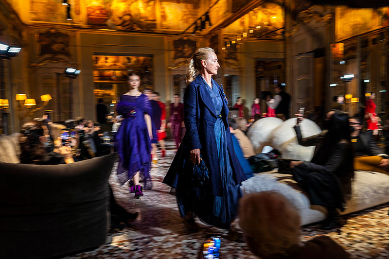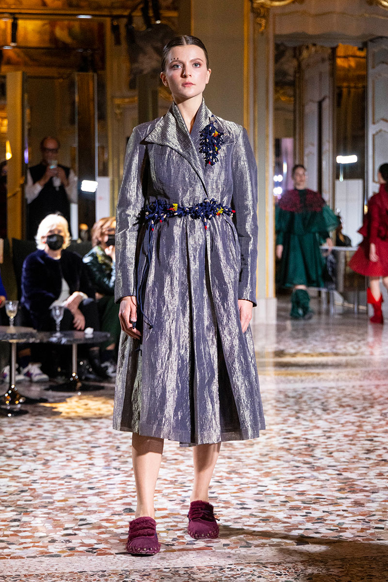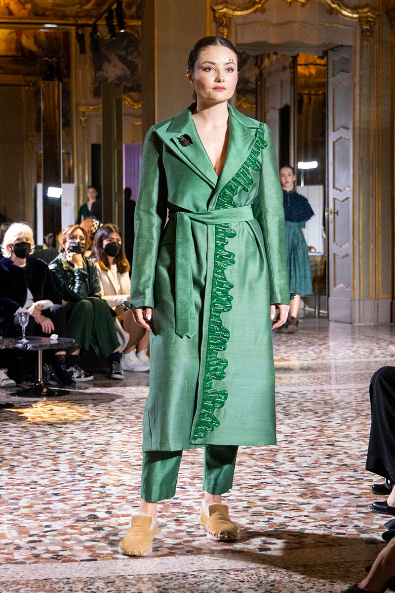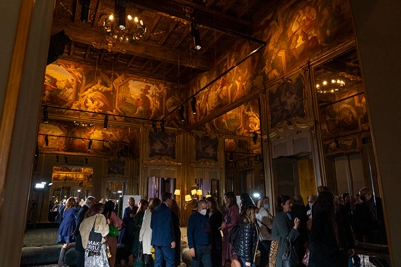 Simone Vago – nephew of vanguard artist Valentino Vago – and Paola Amerio hosted the show attendees and guided them through this emotional journey. The sprawling space at the palace where the show took place featured four gigantic rooms that accommodated the over 250 guests – which included some of Milan’s top journalists and VIPs – that attended the show.