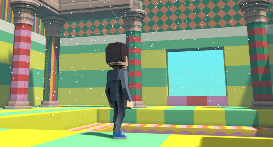 Until November 9, Gucci Vault Land will exist as an event outside the typical seasons of The Sandbox. In search of marvels, players enter the ‘Garden of Curiosities’ to begin the experience. In this oasis of greenery decorated with ancient- like ruins, NPCs in the form of amusing robots with oversized computer heads are ready, willing, and able to guide players through the countless activities the digital playground offers. Through a grand entrance hall with imposing Doric columns leading the way, the adventure unravels inside a number of Rooms, each designed to welcome players to different gamified experiences portraying Vault’s core pillars.