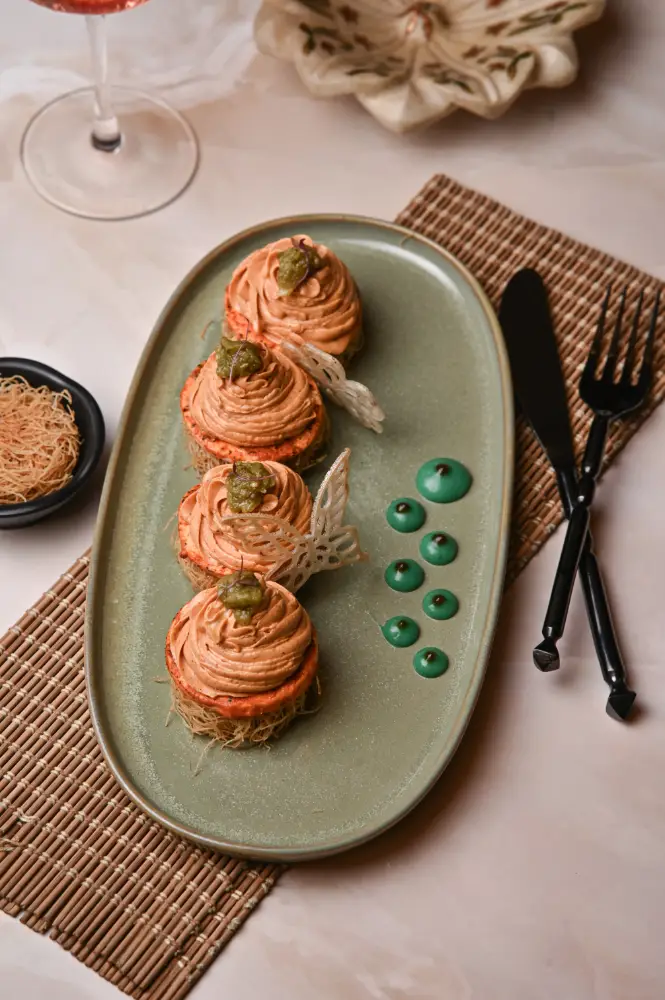 Cottage Cheese Mousse Nest with Pickled Kataifi at The Swinton House