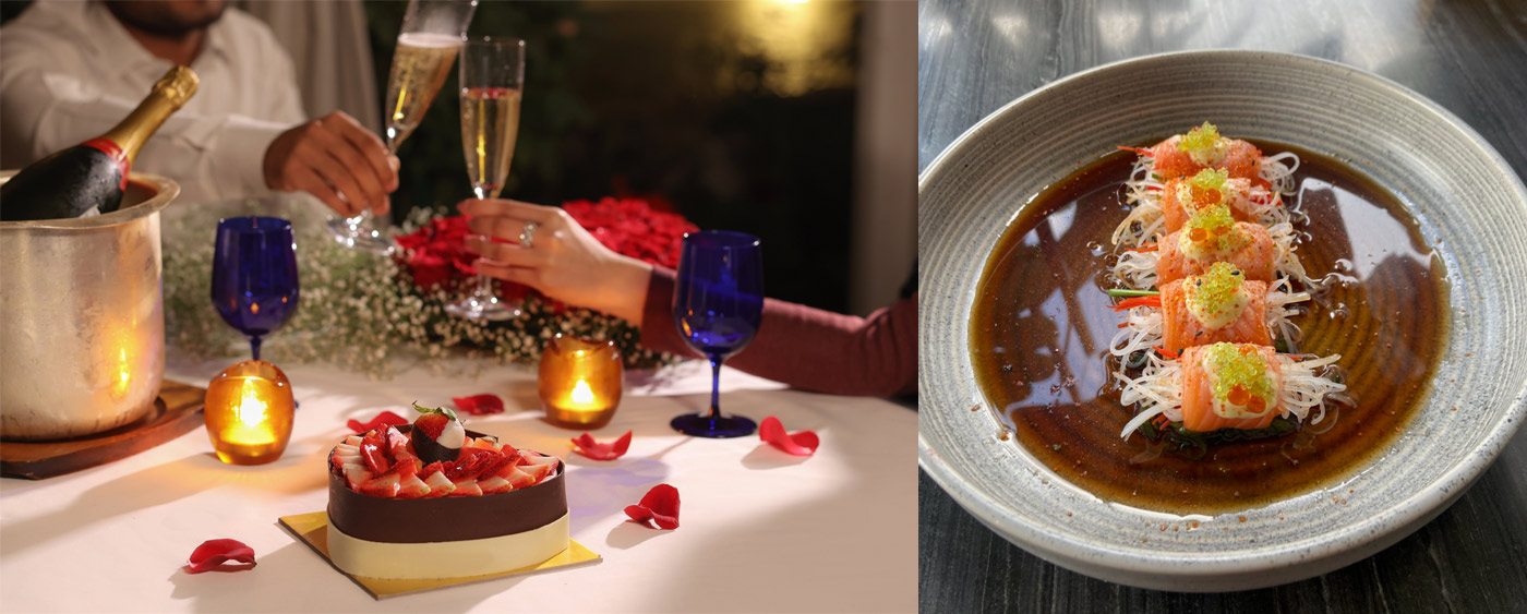 At ITC Gardenia, make your loved one feel special with a delicious spread of food with the Valentine’s Day Special Buffet Dinner at Cubbon Pavilion (INR 2,200 + taxes per person). Indulge with your partner in a luscious dinner experience at Lotus Pavilion with an intimate Cabana, specially reserved for couples, serving set menus from their specialty restaurants. Chef's Special Menu, Personalized Butler Service, Unlimited Premium Beverages: INR 9,999 all-inclusive for two people. (Contact +91 80 2211 9898 or email: mytable.itcgardenia@itchotels.in )