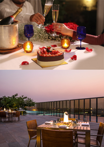 Enjoy a special Valentine’s Day lunch at The Roseate Ganges, Rishikesh, by the infinity pool overlooking the surrounding valley. Package includes a welcome drink, two glasses of red or white sangria, four course set menu and a special red velvet cake at INR 8,999 AI per couple. This package (exclusive of wine) can also be availed at the Chidya Ghar restaurant, overlooking the serene hills and verdant greensat INR 4500 AI per couple.