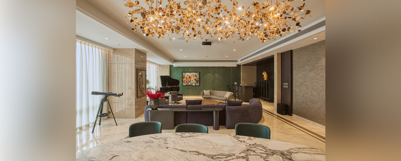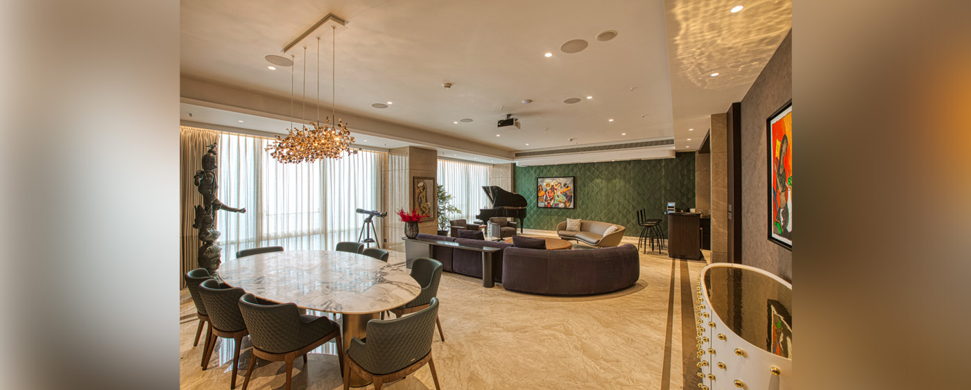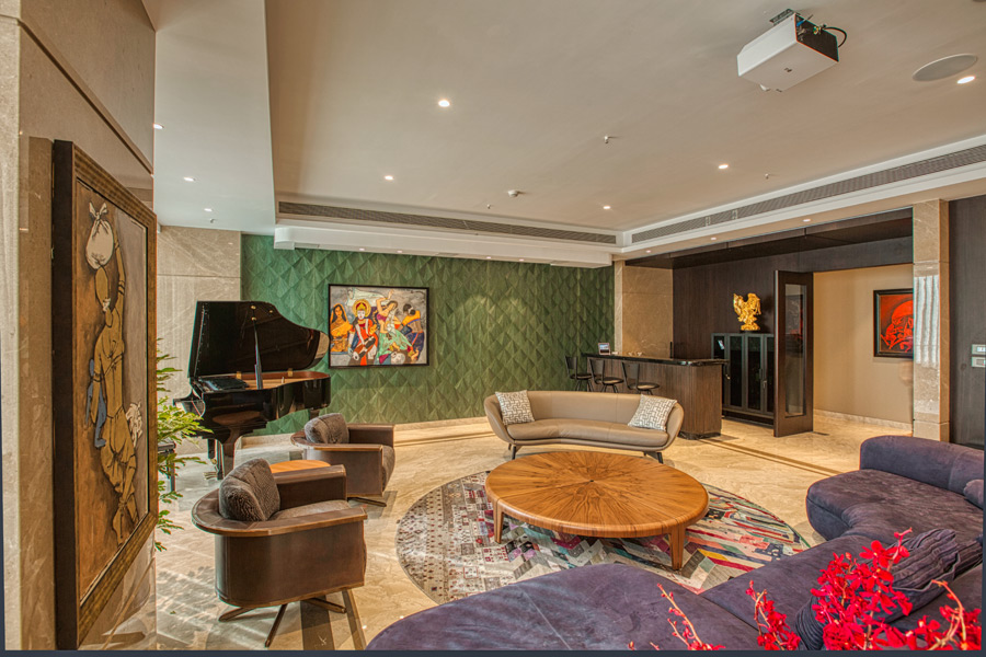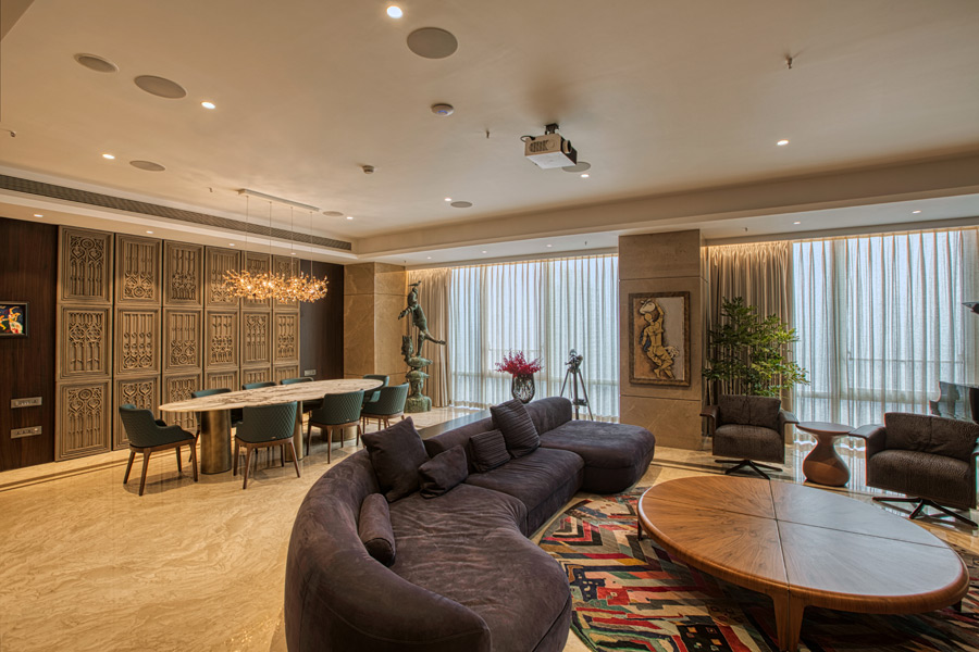 Up above on the 29th floor of a Worli highrise, overlooking the luminous city of Mumbai, sits the elegant 5,000 sq ft home of screen legend Madhuri Dixit Nene and her husband, Dr Ram Nene. Since their previous home was inconveniently divided between two levels, they decided to upgrade their new home to fit their growing needs and evolving lifestyle.