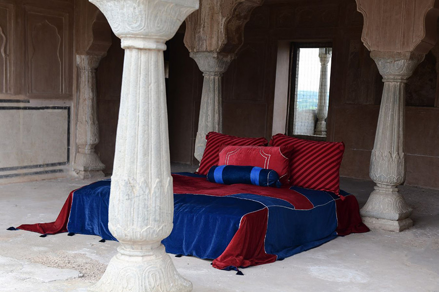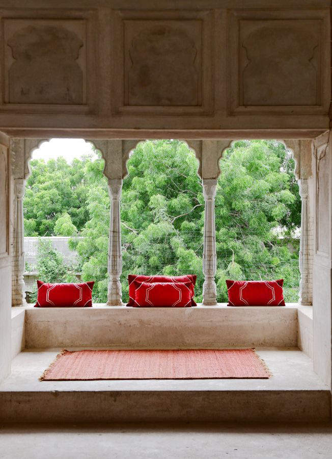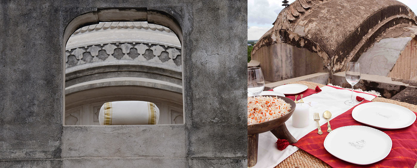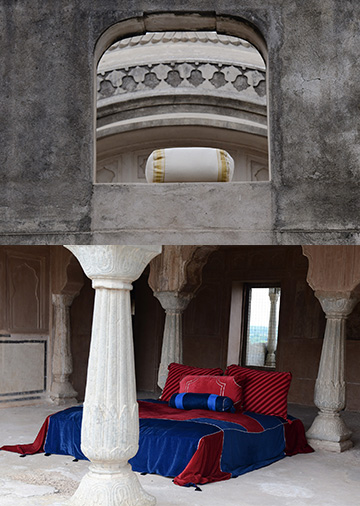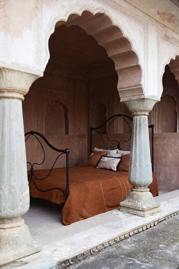 For the Amer collection – what are some of the specific Jaipur royal references that you picked out, for example, the City Palace? The porcelain design has hints of the Raj Mahal and its stunning wallpaper... Also the bolster cushions resemble the antique bolsters in the Amer Fort…