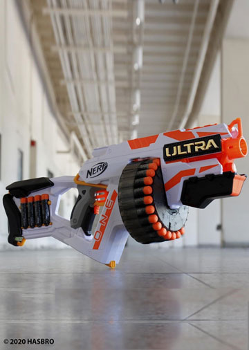 The Nerf wars have begun, and the Nerf Ultra One Blaster by Hasbro is here, revolutionizing the blasting experience. Featuring cutting edge technology and enhanced performance, Nerf Ultra is the new gold standard in blasting, with the farthest flying Nerf dart ever.