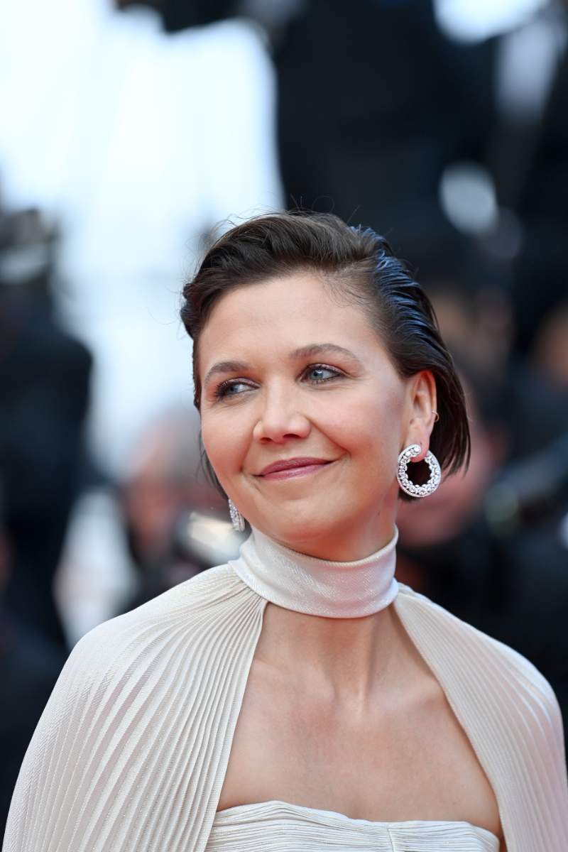 American Actress and Member of the 74th Cannes Film Festival Jury, Maggie Gyllenhaal sparkled in earrings from the Precious Lace Collection in 18 k white gold and titanium featuring 11.32-carats of diamonds and a ring from the Haute Joaillerie Collection in 18 k white gold featuring a 14.94-carat oval-shaped sapphire with diamonds.