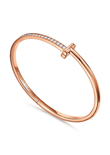 Tiffany T1 narrow diamond hinged bangle in 18k rose gold